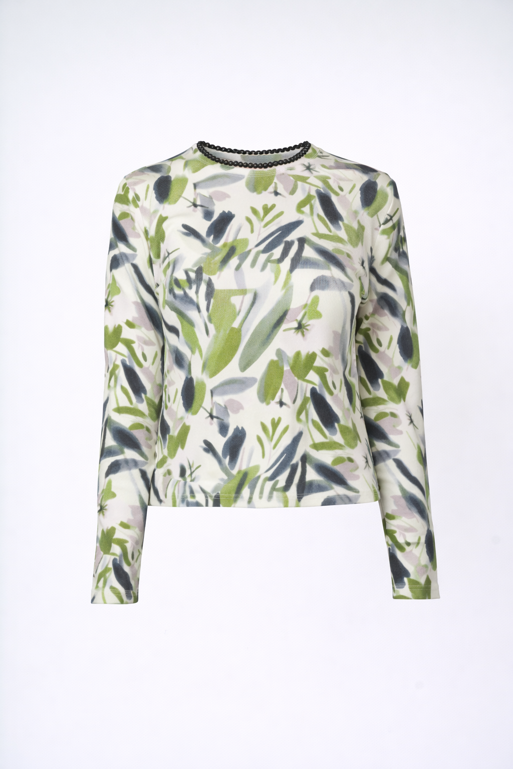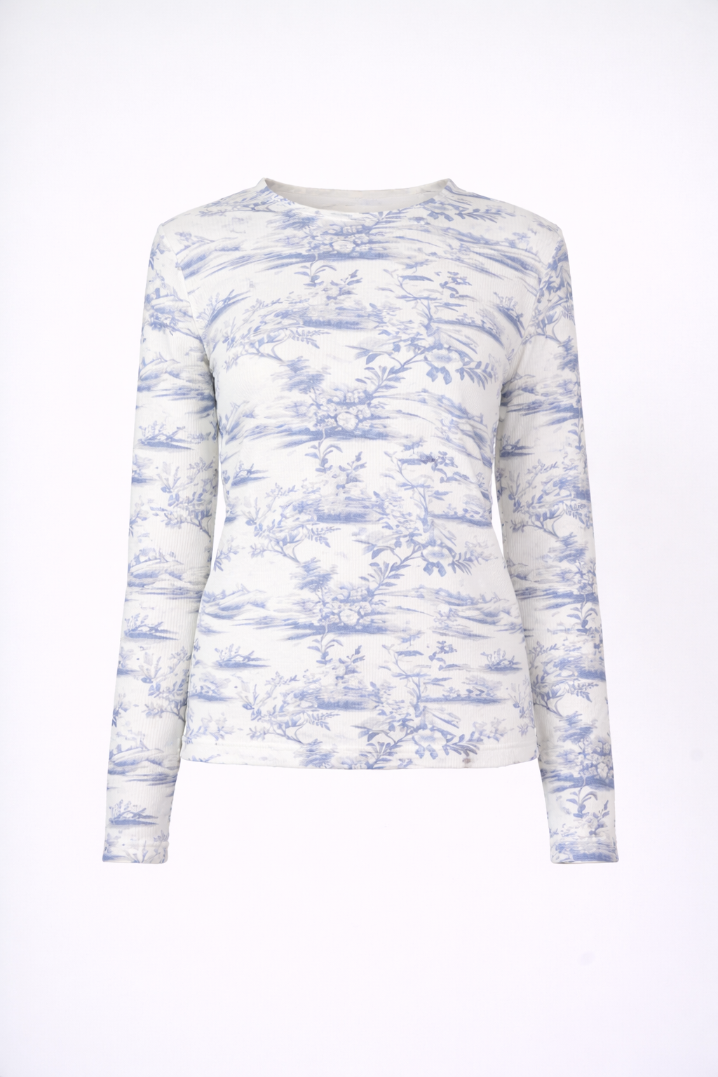 חולצת בייסיק מבד ריב בהדפס קייצי