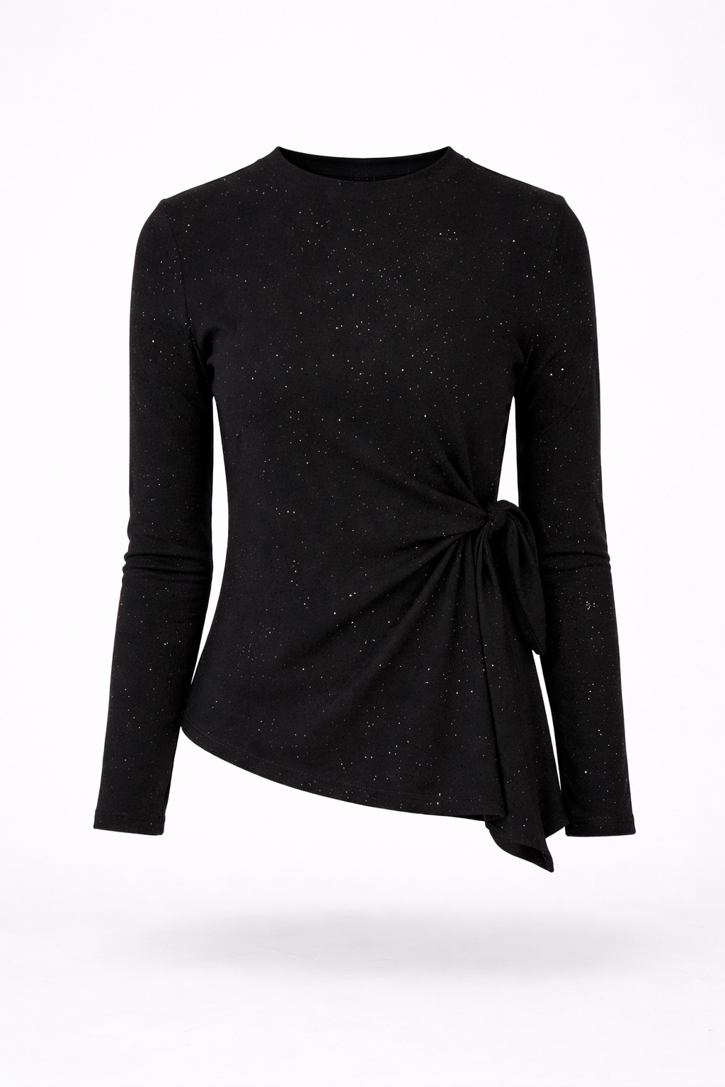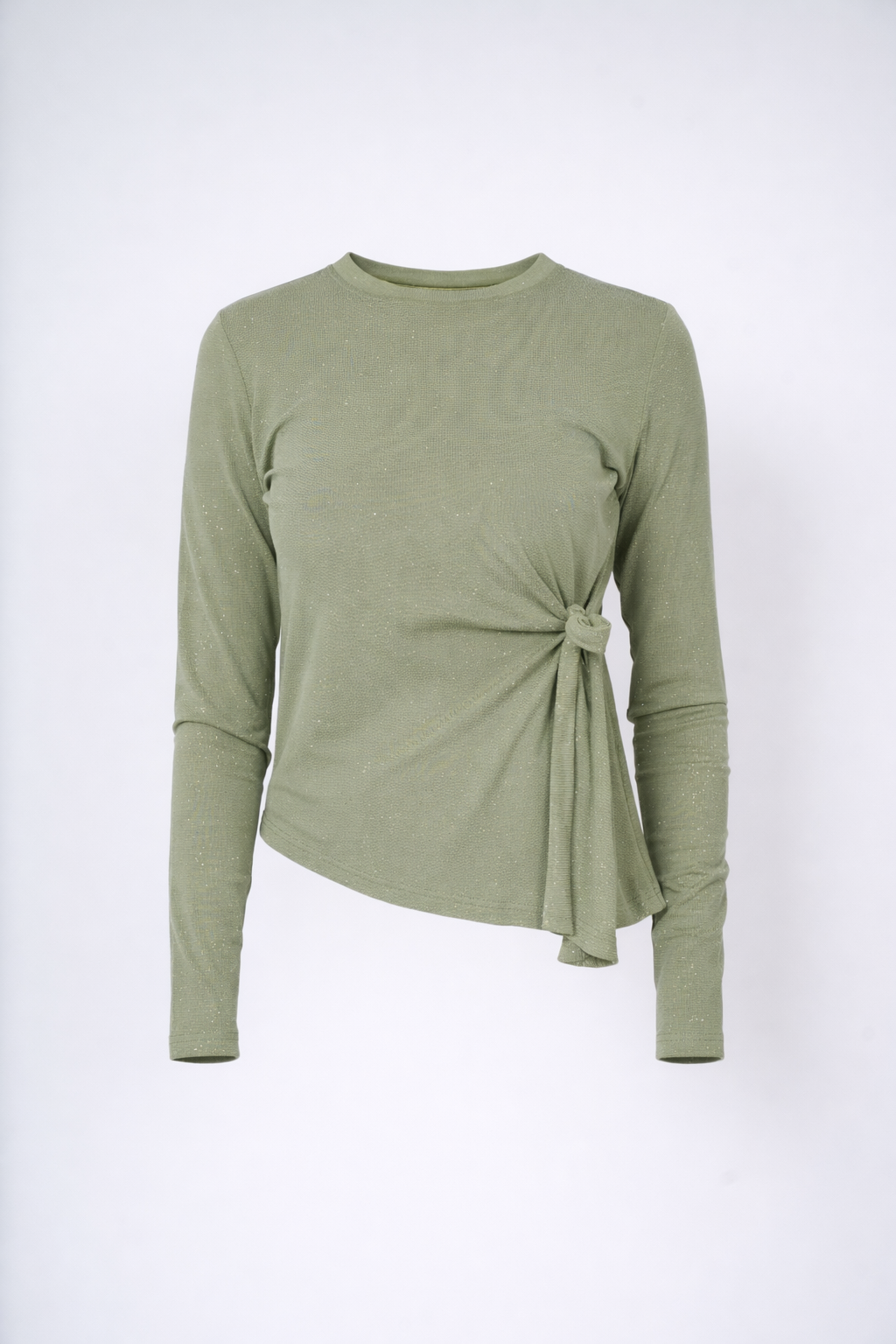 חולצה נעימה מבד טריקו עם קשירה במותן