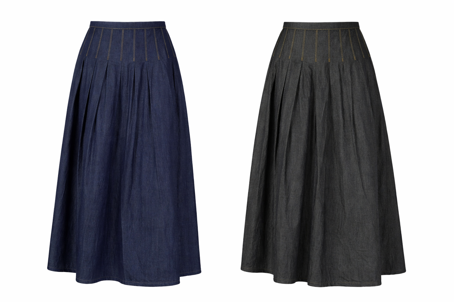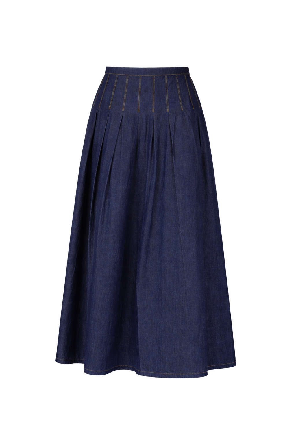 חצאית דמוי גינס מבד קליל ונעים עם תיפורים באורך 90 ס"מ